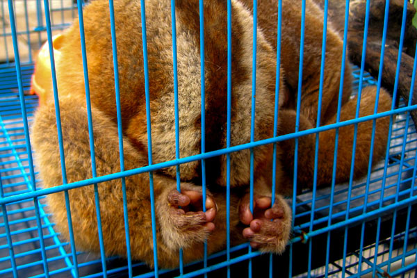 Captured lorises are under appalling conditions where they are trapped for days, do not receive any food and are severely beaten for screaming in pain and fear. They often suffer from stress and anxiety from lack of food, trapped surrounding and tranquilizers.